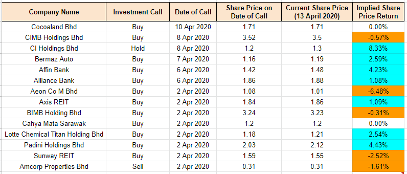 For the Malaysian companies I am keeping track with a Buy call, most of them are down in line with the general market. The best performing companies in terms of share price are C.I Holdings(8.3%), Padini (4.4%) and Affin Bank (4.2%). To date, the portfolio of companies I am keeping track on have moderated further to 0.9% return (10 April 2019: 1.9%). You can have a look at the companies I am keeping track on in the Google Excel sheet here or the table below.