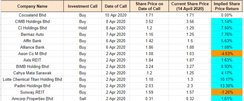 For the Malaysian companies I am keeping track with a Buy call, most of them are up in line with the general market. The best performing companies in terms of share price are Padini (13.3%) and Lotte Chemical Titan (10.2%). To date, the portfolio of companies I am keeping track on have improved to 3.2% return (14 April 2019: 1.8%). You can have a look at the companies I am keeping track on in the Google Excel sheet here or the table below.