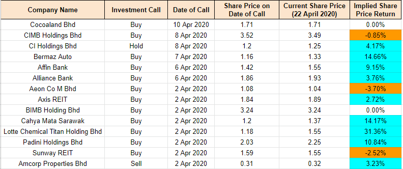 For the Malaysian companies I am keeping track with a Buy call, most of them are still up. The best performing companies in terms of share price are Lotte Chemical Titan (31.4%), Padini (10.8%) and Bermaz Auto (14.7%). To date, the portfolio of companies I am keeping track on have moderated to 4.8% return (22 April 2019: 5.9%). You can have a look at the companies I am keeping track on in the Google Excel sheet here or the table below.