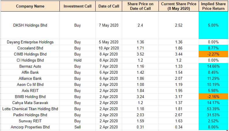 For the Malaysian companies I am keeping track, most of them are still up. The best performing companies in terms of share price are Lotte Chemical Titan (53.4%), Padini (31.5%) and Bermaz Auto (14.7%). To date, the portfolio of companies I am keeping track on have improved to 8.7% return (6 May 2019: 7.6%). You can have a look at the companies I am keeping track on in the Google Excel sheet here or the table below.