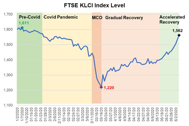 The Kuala Lumpur Composite Index (KLCI) today advanced by 1.5% to end at 1562 points, breaching the 1,550 psychological level. The next technical level to look out for will be the 1,600 level, which will put the KLCI firmly at levels before the Covid-19 pandemic of 7 Jan 2020 (1,611 points). This marks an important development, as breaching the 1,600 levels signals a full recovery.