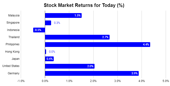 All markets in the region were up notably Philippines (+4.4%), Thailand (+2.7%), while Indonesia (-0.5%) was the sole loser in the region. Meanwhile, the US market (+2.0%) continued its ascension into bull territory, breaching the 26,000 level. The Germany stock market was in a similar state growing by a bullish 3.9%.