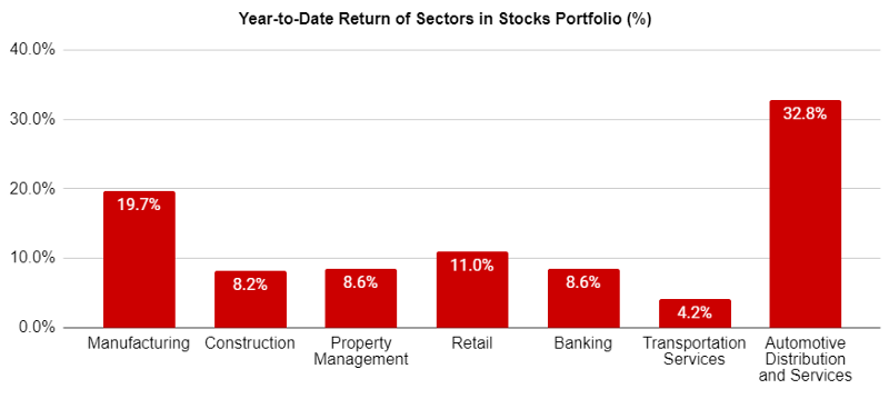 Portfolio Performance: Portfolio returns were steady and remained higher than KLCI returns.