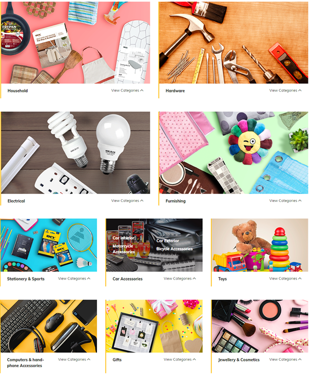 Mr DIY primarily sells Hardware, Household, Electrical, Furnishing, Car Accessories, Stationery & Sports, Toys, Gifts, Computer & Mobile Accessories and Jewellery & Cosmetics products to everyday people. It does this primarily through their physical shops, with 640+ stores in Malaysia, and its online platform, MrDIY Online.