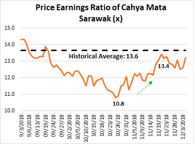 The most simple and straightforward strategy is to just buy underrated companies with price earnings ratio that are lower than 15.0x or their historical average, and wait for them to trade back upwards. This is exactly the same investment philosophy that Warren Buffet had in his early career and now — save up cash and buy companies when they are underrated. For example, Cahya Mata Sarawak in 2018 displayed such an investment strategy of buying at a low price earnings ratio (10.8x, underrated) and selling at the historical average price earnings ratio (13.6x).