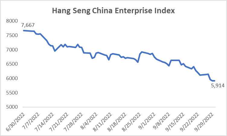 The Chinese Stock Market Sharply Declined in the 3Q 2022, due to the Chinese government Instituting Lockdowns and the Property Market Getting Worse.