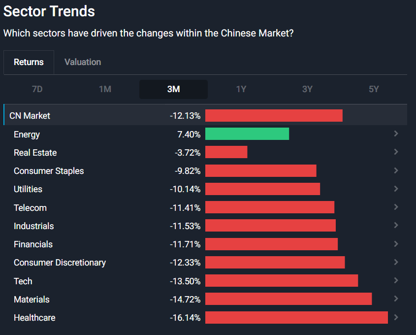 8 out of 11 sectors in the Chinese Stock Market, declined by more than 10% during the 3Q 2022, making this one of the worst years on record.