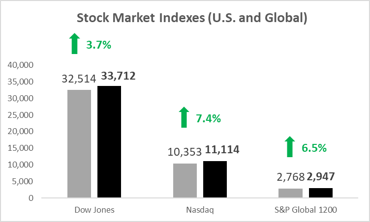 U.S. markets were up due to the news of easing inflation as it signals that rate hikes are working.