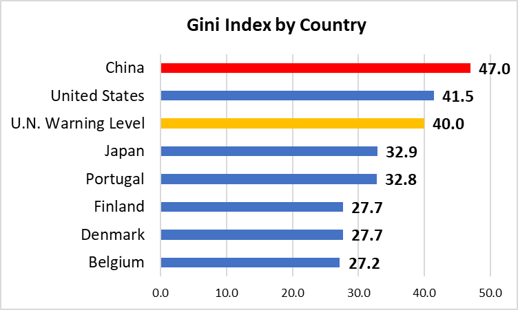China’s Gini coefficient has been stubbornly coming in at 0.47 as of 2020 according to the National Bureau of Statistics China, above the United Nations warning level of 0.40. For some context, Gini coefficient is a measure of inequality in the country – the higher the index, the more unequal the country is and vice versa. Many of the advanced economies did have high inequality while they were growing rapidly previously and addressed them at the later stage of their economic development when higher standards of living became more important.