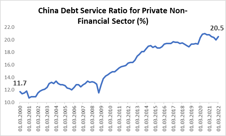 About 71.4% of urban household wealth in China is concentrated in properties according to the China Household Wealth Survey 2019. Couple that with the fact that China’s houses are one of the most unaffordable in the world at a price-to-income ratio of almost 30 times, it is no wonder then that Chinese households are spending more of their money on repaying their debt. Debt service ratio (portion of money spent on repaying debt to income) for private non-financial sector rose by 2 times from The big worry now is that declining house prices in China could drive down consumer spending as Chinese tighten their belts in light of the decreasing value of their homes.