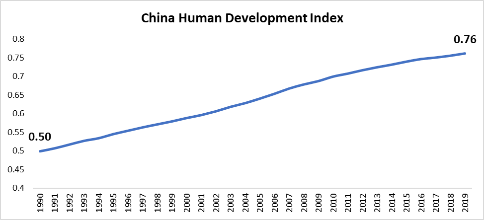 In a nutshell, Human Development Index measures the advancement of life expectancy, education, and income per capita – basically life quality of its citizens. China ranks 85th out of 183 countries in the index at a score of 0.76. While it has improved significantly from 0.50 in 1990 to its current 0.76 level, it still lacks far behind many of the advanced economies and will need to address these problems moving forward and not just focus on economic growth.