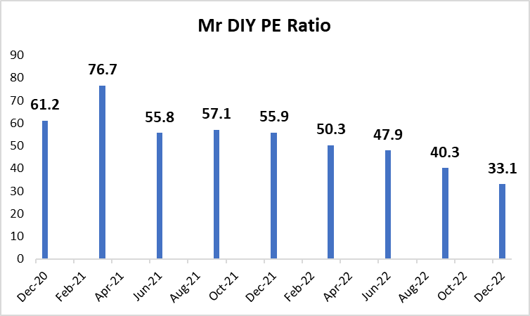 That has been disappointing as profits only rose by about 40.3% in these 2 years. Its revenue growth was impressive but ultimately investors found its profit margins disappointing also. Profit margins have been on a steady decline from 13.2% in 2020 to 11.9% in 2022. Hence, investors who were too bullish on Mr DIY’s growth began to withdraw from Mr DIY as they realise that its current pace of increasing its profits might be too slow for their liking.