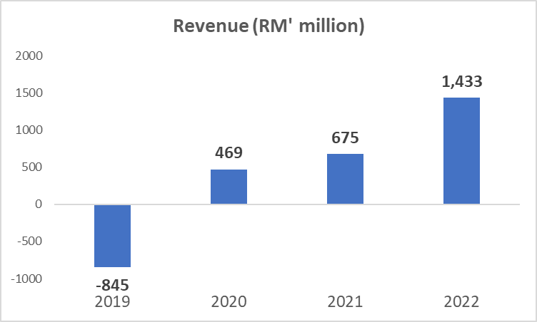 Yes, I said it. Grab is a monopoly — at least in Malaysia and Singapore. Its revenue doubled from US$675 million in 2021 to US$1.4 billion in 2022, making 2022 the best year in the record it has. It managed to register a positive gross income of US$77 million in 2022, compared to dismal performances in the past 3 years.