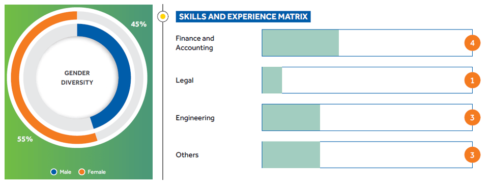 Let’s move on to the board. I would consider the board diversity to be quite inclusive. Men make up just 45% of TNB’s board in 2022, where the remaining 55% are women. The expertise in its board are quite evenly split between finance & accounting and engineering which is important to maintain that balance between business profitability and the technical expertise required to run the company. Here are the details surrounding who is currently on the board.