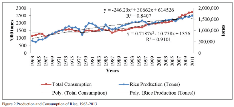Even though the production of rice in Malaysia has been fairly steady in the past ten years, ‘steady’ just won’t cut it in the long term. We’re just eating more rice than the local farmers can harvest, and the gap between consumption and production is likely to widen going forward.