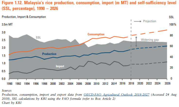 Notice how the estimated rice production stays more or less the same, but the consumption numbers keep going up? Yeah, that’s a problem. A paper published by the Khazanah Research Institute in 2019 supports that notion: