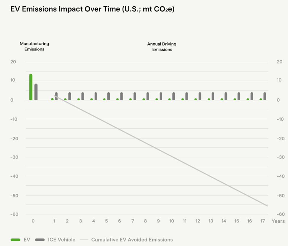 One Tesla will avoid about 55 tons of carbon emissions in its lifetime