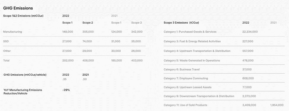 If we look at its scope 1 and 2 emissions which essentially measure whatever direct emissions Tesla is emitting from its production process and the lifetime of the cars, that has come down by 29% to 0.35 mtCO2/vehicle in 2022 from 0.50 mtCO2/vehicle in 2021. Here are the quick explanations of scope 1 and scope 2 emissions.