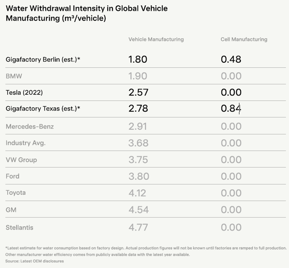 Tesla … uses a lot of water … surprisingly but its usage is low compared to the industry