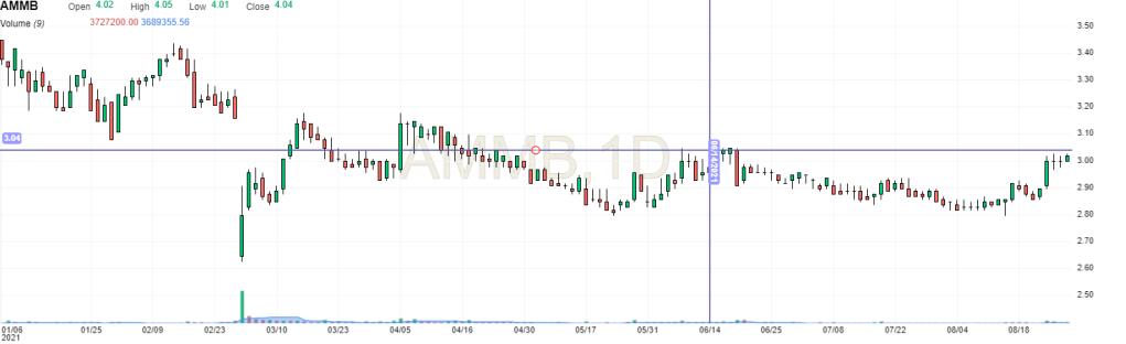 My technical was simple. I just looked at the previous high price which was in the middle of June 2021. It was trading at about RM3.05, and I observed that AmBank’s share price was on the brink of breaching that level in the middle of August 2023.