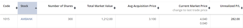 Here’s the proof. I invested in AmBank for RM3.10 in August 2021 and exited at RM4.04 in November 2023.