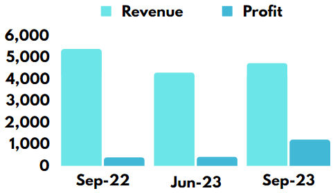 Revenue grew by 1.1% to RM13.5 billion in 3Q 2023 from RM13.3 billion in 2Q 2023 but declined by almost 30% from a year ago. Net profit meanwhile has tripled to RM877 million from RM271 million over the same period. The good thing about TNB is that its profit margin is significantly higher at 6.5% in 3Q 2023 compared to 5.1% in 3Q 2022 when revenue was at one of its highest.