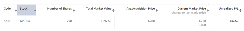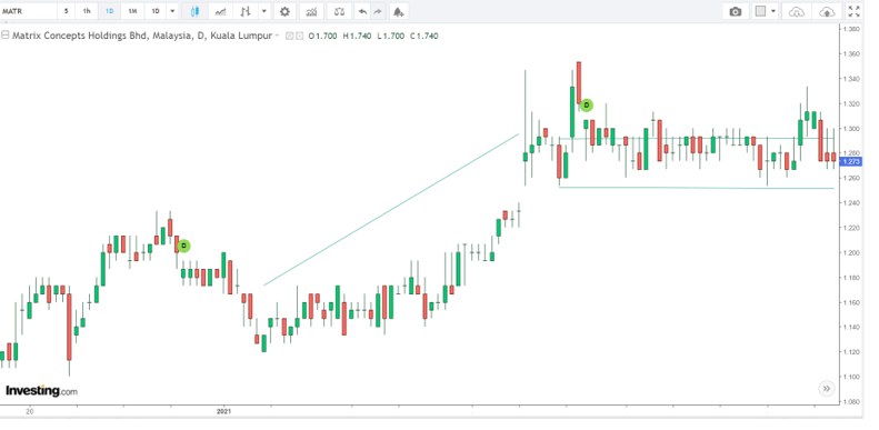 There wasn’t anything complicated here. I just saw that the share price stabilized around RM1.25 to RM1.30 from March 2021 to May 2021. Before that, there was already an upward trend from RM1.12 to the current range. Hence, I locked in at the price around this range and acquired Matrix at an average price of RM1.28.