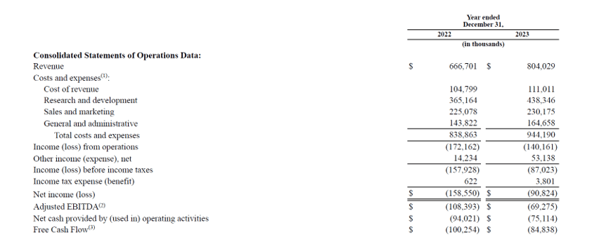 That’s the reality of an internet company. It made a loss of US$90.8 million in 2023. But to give it credit, it did manage to reduce its losses from 2022 (US$158.6 million).
