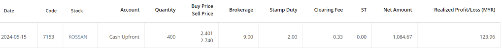 Hence, my total profit from Kossan in 2.5 years was 27%.
