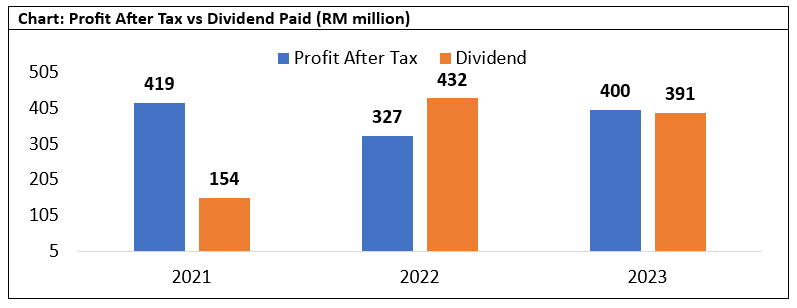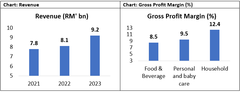 Firstly, revenue has grown by 10% every year from 2021 to 2023, and it now generates RM9.2 billion in annual sales.