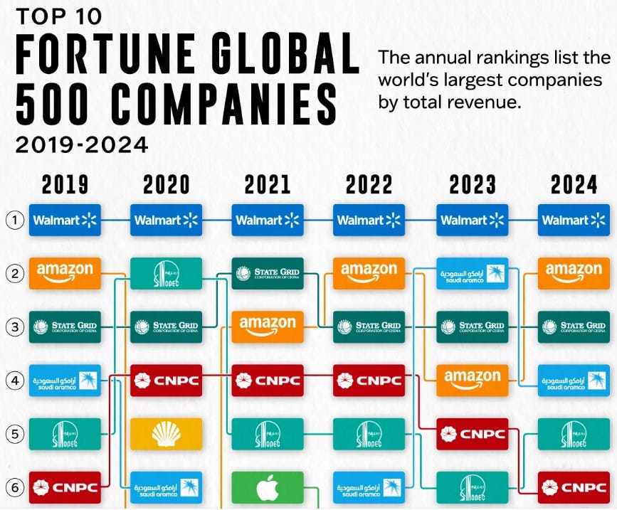 - There are three Chinese companies (State Grid, CNPC and Sinopec) which have consistently ranked in the top 6.