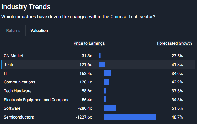 However, here is an attempt. According to SimplyWallSt, the tech sector is trading at a very high price-to-earnings ratio of 121 times. If we delve down deeper into the subsectors, it’s quite scary.