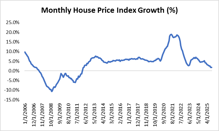 At least, according to data, house prices growth has been coming down since the beginning of the year, and is now at the weakest levels since 2012 (Oct 2025: 1.7%). While there have been some positives for 2025 and 2026, the outlook still looks pretty weak.