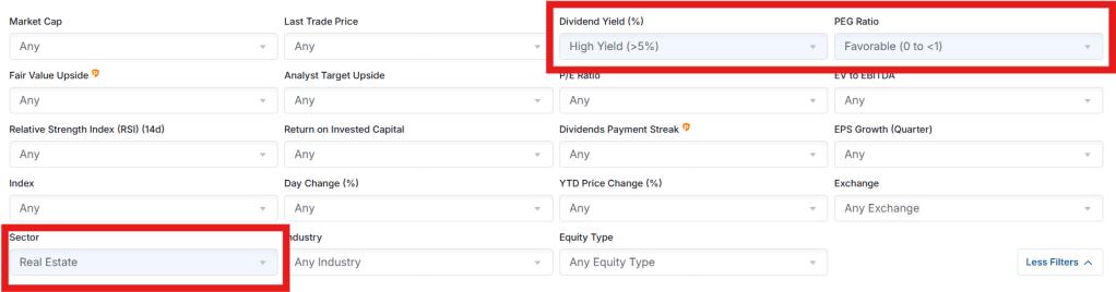 In the last part here, I will be identifying the specific REITs that I think are worth researching further. First, I will outline the steps I am taking to screen for the stocks, then provide some research into why I am taking a deeper look into them.