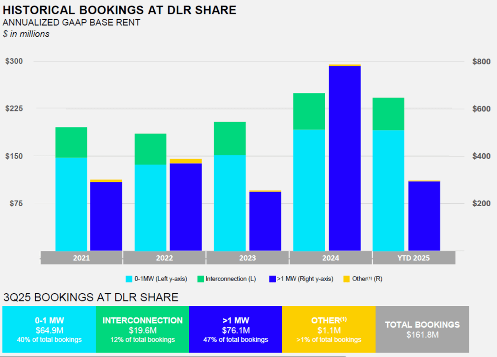 - However, more than 1 MW of bookings in 2025 seemed to be slowing from 2024. No doubt, the 2025 data does not have 4Q bookings yet, where companies typically renew by the end of the year.