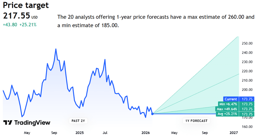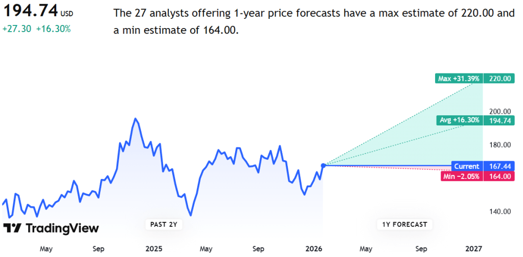 Trading View has the company at a target price of $195 with an implied upside of +16.3%.