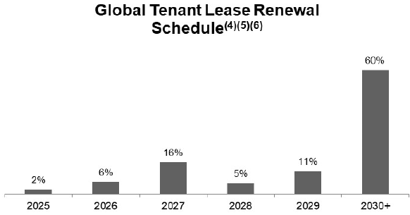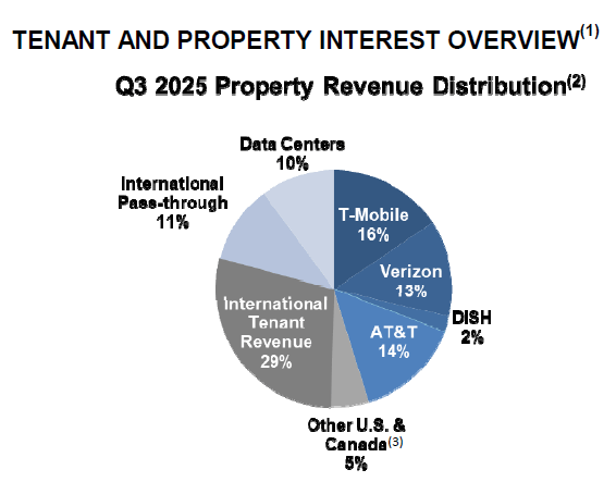 There are several pros and cons that I would like to talk about here. Let’s start with the pros. Firstly, it has a very solid core clientele in wireless service providers (T-Mobile, Verizon, Dish and AT&T) that has very long rental contracts with American Tower. Typically, these contracts run from 5 to 10 years, and renewal rates grow by about 3% annually to keep up with inflation. This is a stable revenue source, which doesn’t require a lot of monitoring as they are long-term. 60% of its clients are due for renewal past 2030.