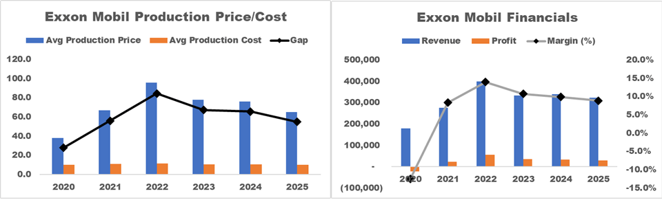 I examined two trends here: 1) the ‘gap’ between production cost and prices, and 2) the revenue level and net profit margin of Exxon Mobil to tease out a meaningful trend to forecast 2026. Their trends should look alike.