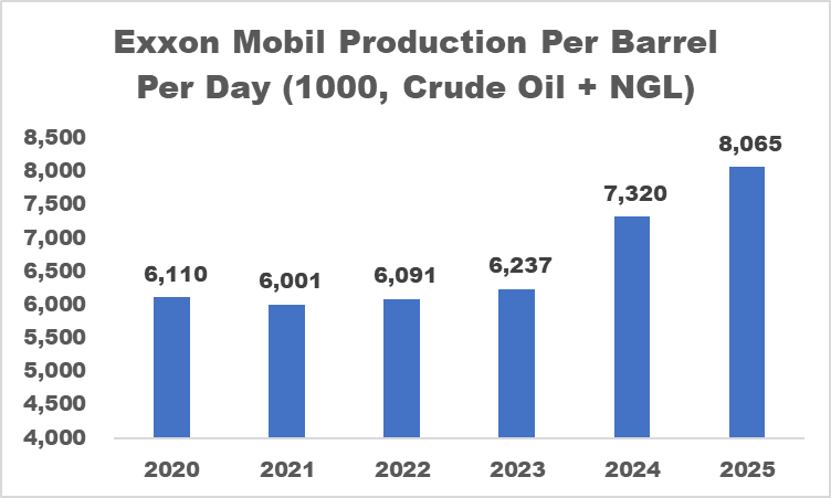 Mind you, Exxon’s production volume has consistently increased throughout the years (except 2021). So, it’s reasonable to conclude that price is the main factor that drives Exxon’s business.